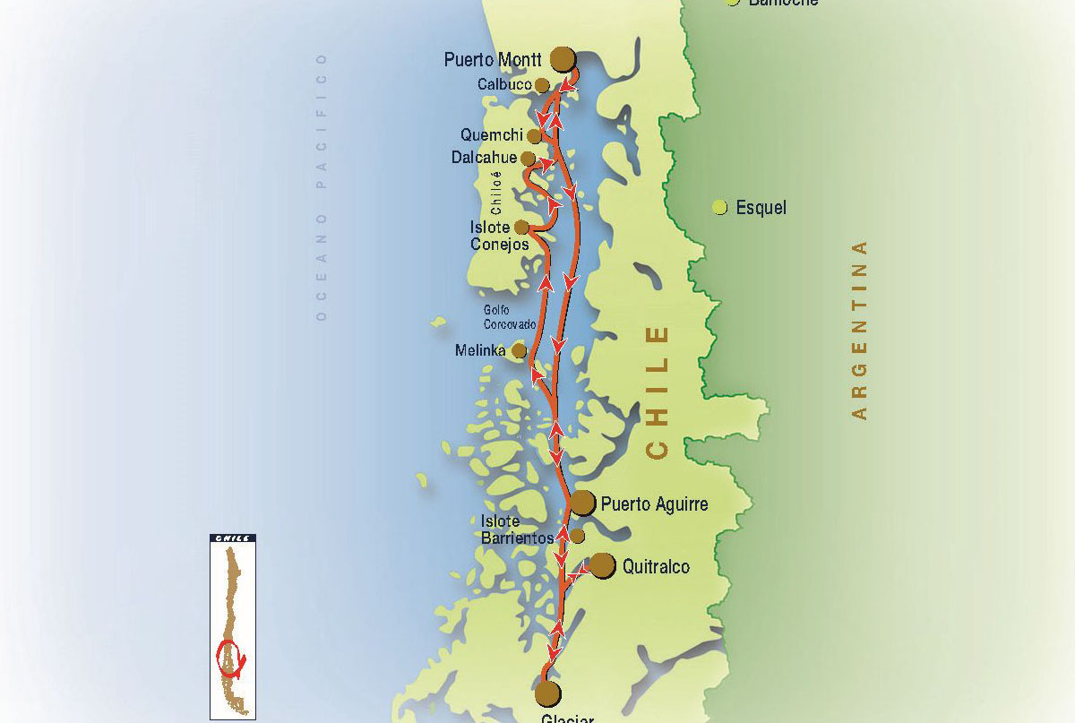 a motor por el interior del Fiordo. 17:00 hrs. Zarpe rumbo a Chiloé navegando por canales